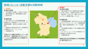 ◆主な業務 【NPO法人みんなと湊まちづくりネットワークのホームページ】 (2)一箕地区の地域づくり担当 【一箕地区ひとみ創造ネットワークのホームページ】 ※地域活性化に向けた取組やイベントについて ◆3年間の活動イメージ ◆1週間の活動イメージ